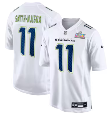 Home>NFL>2025 2026 Super Bowl LX>Seattle Seahawks>Jaxon Smith-Njigba Seattle Seahawks Nike Super Bowl LX Patch Tundra Fashion Game Jersey White