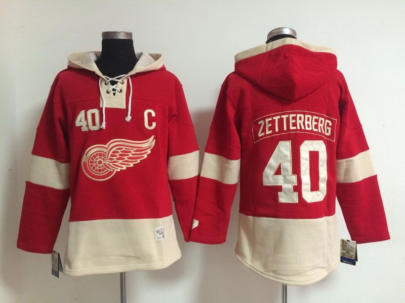 - Men Detroit Red Wings 40 Henrik Zetterberg Cream Sawyer Hooded Sweatshirt Stitched NHL Jersey