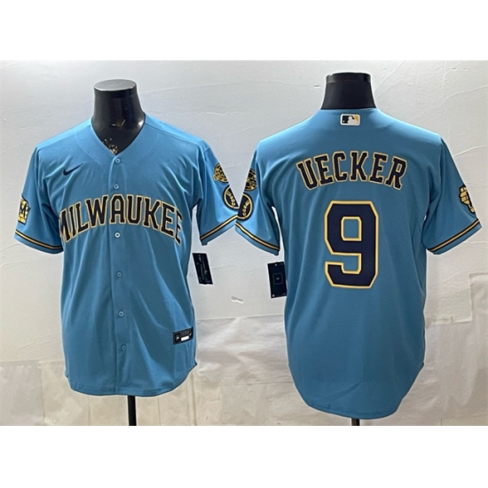 - Men Milwaukee Brewers 9 Bob Uecker Cream With Home Patch Stitched Baseball Jersey