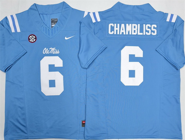 - Men Ole Miss Rebels #9 Tre Harris III Light Blue Stitched NCAA Jersey