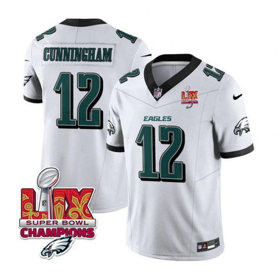 Men Philadelphia Eagles 12 Randall Cunningham White 2025 Eagles Logo Super Bowl LIX Patch New F U S E Vapor Limited Stitched Football Jersey