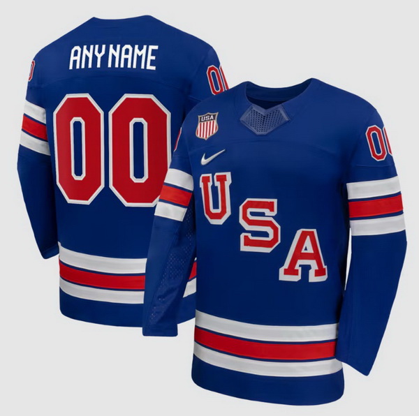 - Men's USA #86 Jack Hughes Blue 2026 Stitched Jersey