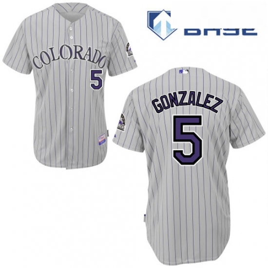 - Mens Majestic Colorado Rockies 5 Carlos Gonzalez Authentic GreyBlue Strip Cool Base MLB Jersey