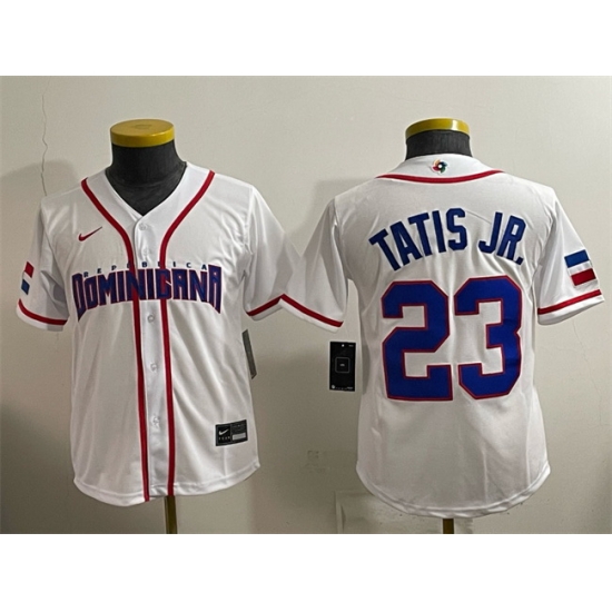 Home>MLB>2026 World Baseball>Dominican Republic>Women Dominican Republic Baseball Fernando Tatis Jr White 2026 World Baseball Classic Home Stadium Stitched Baseball Jersey Run Small