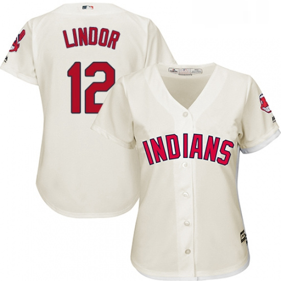 - Womens Majestic Cleveland Indians 12 Francisco Lindor Replica Grey Road Cool Base MLB Jersey